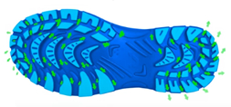 Suela: - antiderrapante - con flujo de lodos - absorción de impacto - resistente a químicos - huella Dainamic